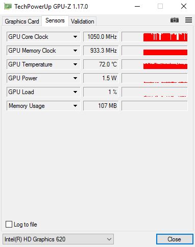 Il sistema di raffreddamento potrebbe non essere sufficiente quando si utilizzano carichi elevati. Il processore si scalda fino a un massimo di 83 °C (~181 °F) con Prime95. Il clock medio era di 2.1 GHz.Non si è osservato throttling termico. Abbiamo registrato un massimo di 72 °C (~162 °F) con la scheda grafica Intel HD Graphics 620 messa sotto stress da FurMark. Il clock della scheda grafica si è situato tra 950 e 1000 MHz.