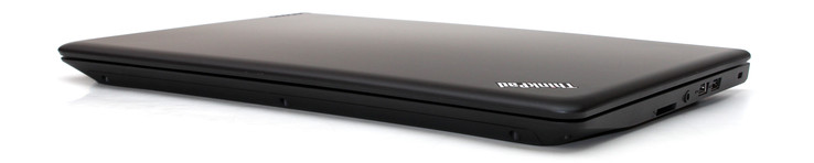 Purtroppo, la serie E ancora rifiuta l'adozione di porte moderne USB Type-C. Il modello di test punta su 3 porte USB Type-A (2x USB 3.0, 1x USB 2.0). Inoltre, il portatile non ha un'interfaccia DisplayPort. Questi deficits sono incomprensibili se considerate il costo di queste features e la loro sostenibilità per il gli utenti target. I potenziali acquirenti dovrebbero sapere che l'interfaccia HDMI 1.4 ha un output per display 4K solo a 30 Hz. Ufficialmente, Lenovo specifica solo il supporto per 1920x1080 pixels (a 60 Hz).