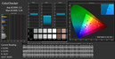 Altre qualità del display come la risoluzione della scala di grigi, la precisione del colore la saturazione differiscono notevolmente dalla situazione ideale al momento della consegna. Non possono essere effettuati lavori di precisione con i colori con un DeltaE 2000 che supera il 10 in molte sezioni. I valori sono considerevolmente migliorati dopo la calibrazione e la differenza dalla situazione ideale si riduce a livello impercettibile. Di seguito il DeltaE 2000 è, ad esempio, a circa 2.5 per quanto concerne scala di grigi e colori.