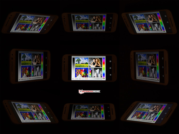 La stabilità degli angoli di visuale del Motorola Moto G (2015) è molto buona. Tuttavia, c'era da aspettarselo considerando la sottostante tecnologia IPS. L'immagine resta stabile anche ad angolazioni estreme, e non si notano inversioni di colore. Solo un leggero bagliore si mostra sull'IPS.