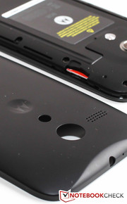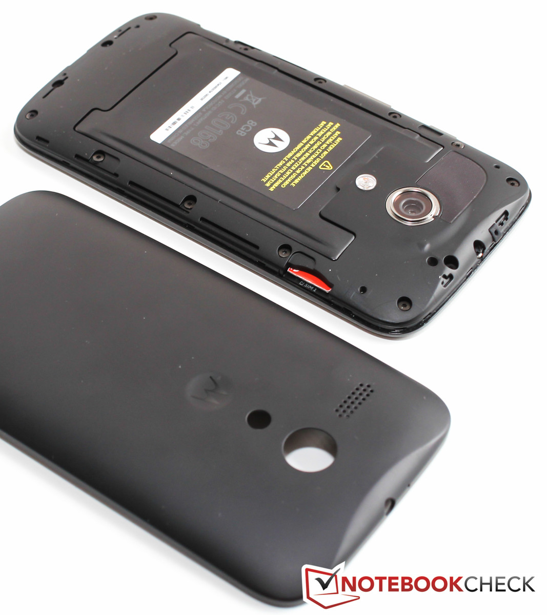 Il case del Moto G è completamente in plastica. Anche se la batteria può essere cambiata solo da un esperto, il pannello posteriore può essere rimosso. Ciò è possibile per due ragioni: la carta micro SIM è inserita sotto il pannello e lo stesso pannello interscambiabile ha diversi colori.