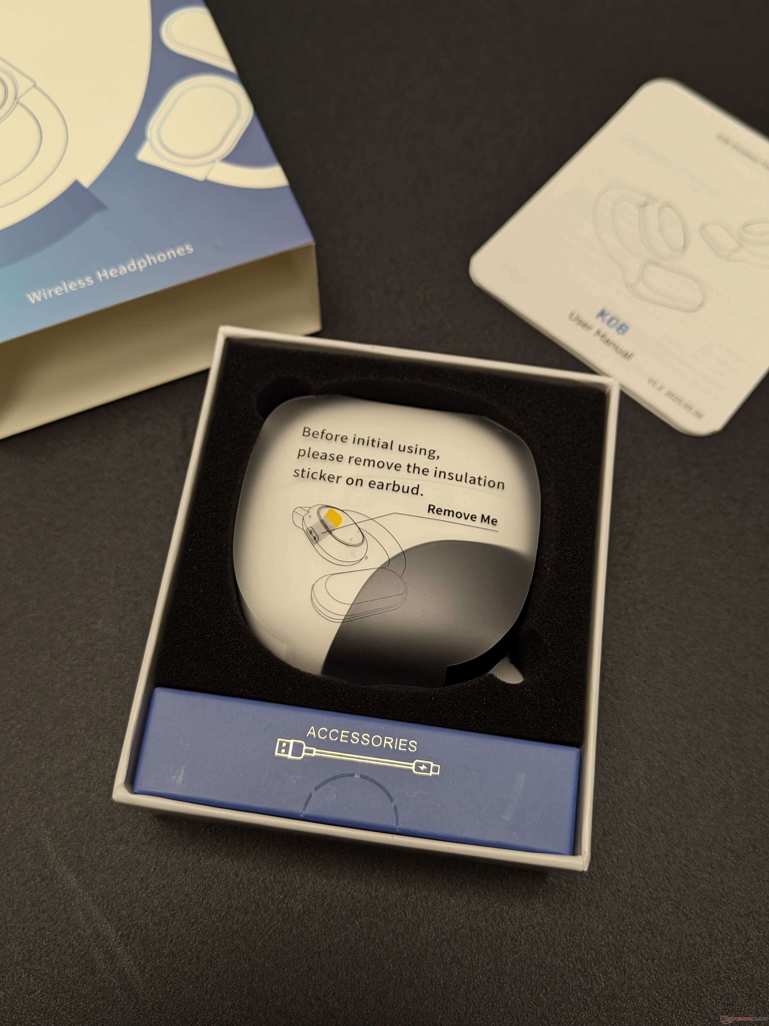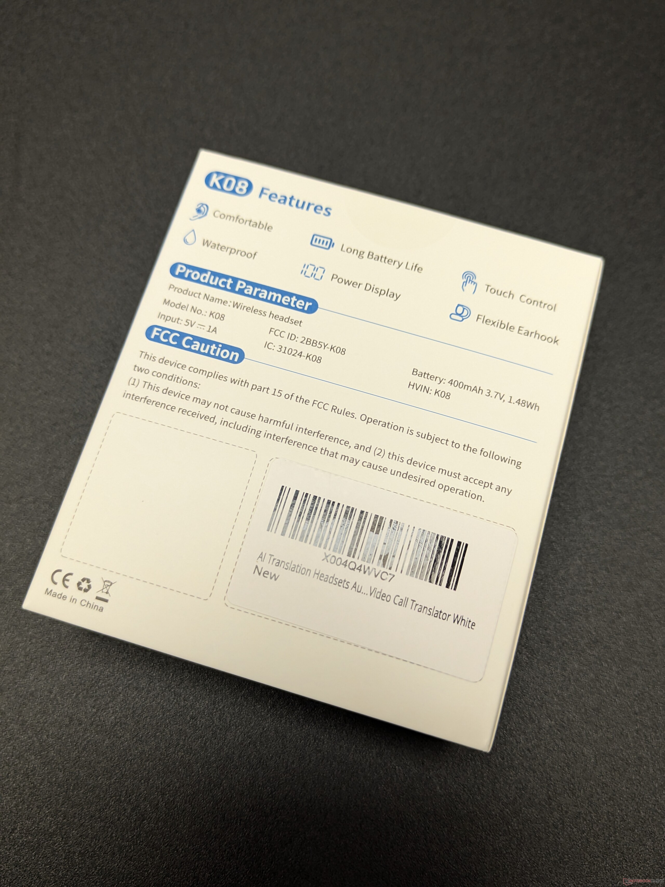 Come per altri accessori audio economici, l'esperienza di unboxing è semplice. L'unità arriva con una custodia di ricarica, istruzioni e un cavo USB. In particolare, l'attenzione si concentra immediatamente sull'applicazione companion, necessaria per sbloccare la funzionalità di traduzione del K08.