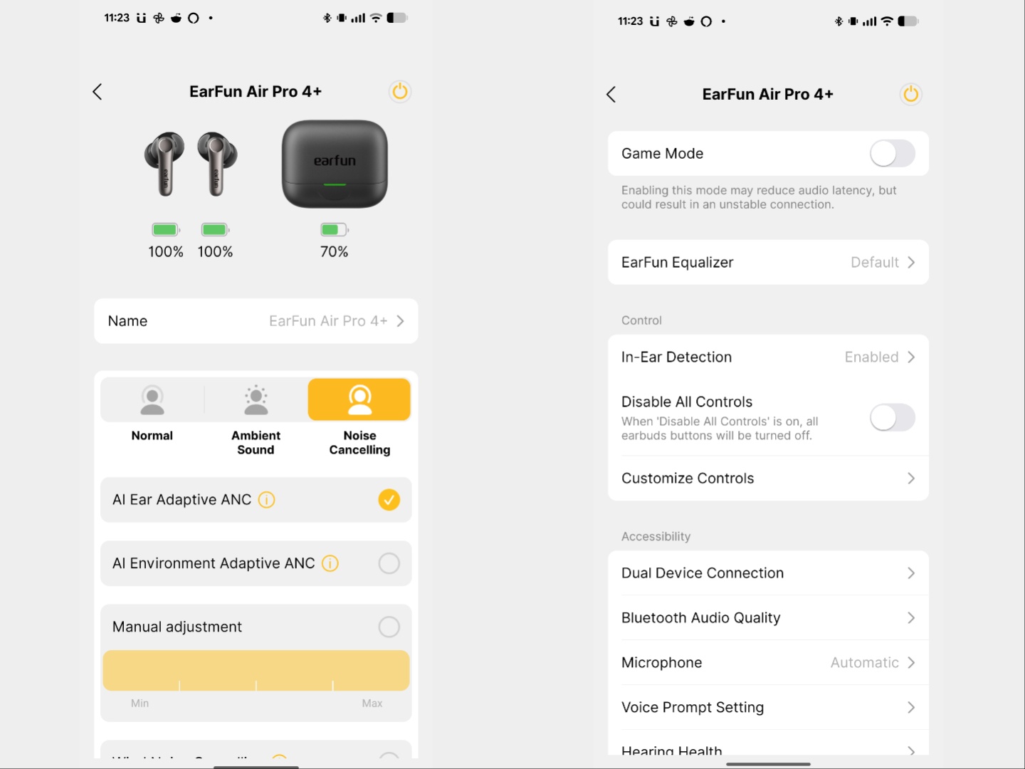 Partendo dall'esperienza di accoppiamento, EarFun Air Pro 4+ supporta Google Fast Pair, per cui aprendo la custodia o premendo il pulsante in basso con la custodia aperta, viene visualizzato un pop-up per la connessione sul telefono Android nelle vicinanze. Da lì, dopo l'accoppiamento, suggerisce di scaricare l'applicazione e l'esperienza complessiva è perfetta. Consigliamo di aggiornare immediatamente all'ultimo firmware.