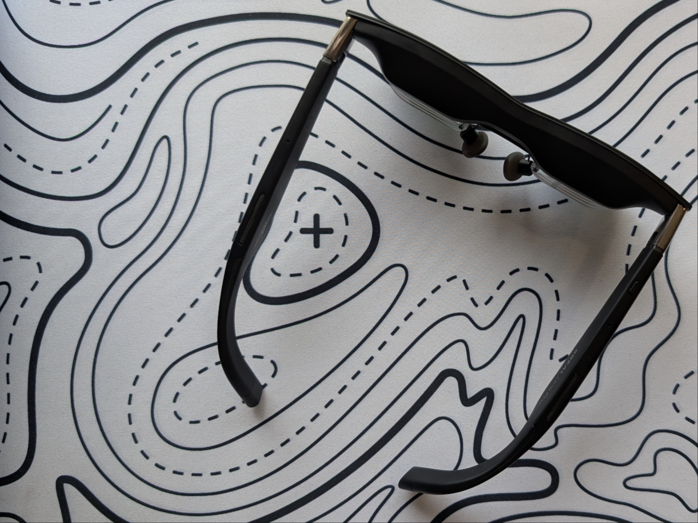 Non ci sono lamentele sulla qualità costruttiva di One Pro. Gli occhiali si sentono solidi, con la giusta quantità di flessione per farli stare sul viso. Naturalmente, sono più ingombranti e più pesanti dei tipici occhiali da vista o delle lenti da sole, con 87 grammi, ma ci si abitua al peso molto rapidamente. A proposito di prescrizioni, le lenti di terze parti possono essere facilmente applicate e staccate, e gli occhiali si piegano senza problemi con le lenti attaccate. Inoltre, gli One Pro iniziano a essere un po' caldi dopo qualche minuto di utilizzo, ma non sono affatto scomodi nemmeno dopo un'ora. Ci sono quattro pulsanti sull'asta destra e una porta USB Tipo-C (ricezione) all'estremità dell'asta sinistra. Entrambe le aste sono dotate di altoparlanti che sparano verso il basso, sintonizzati da Bose, posizionati proprio sopra le orecchie.