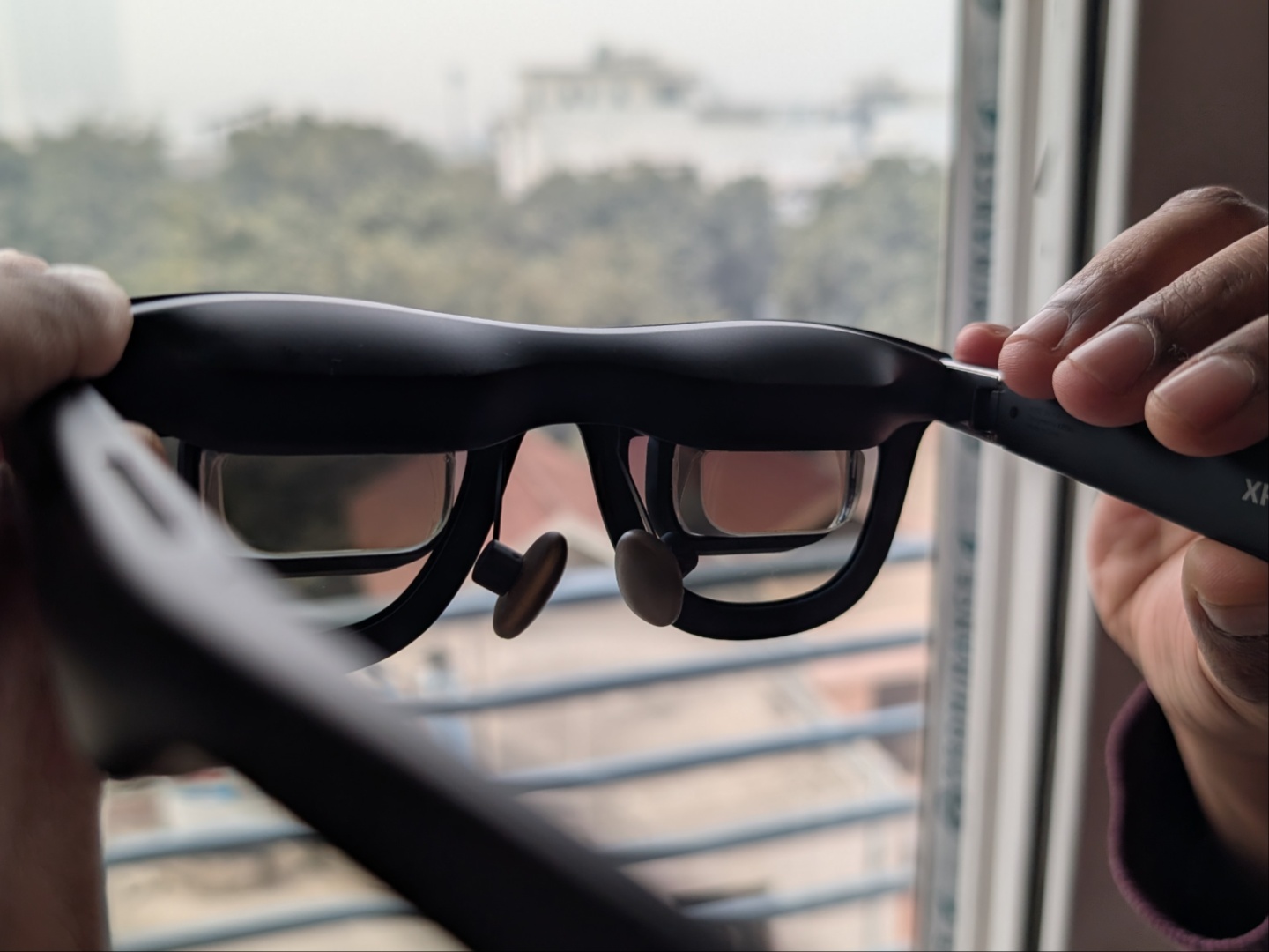 Xreal One Pro offre tre livelli di oscurità grazie all'oscuramento elettrocromico. Xreal le chiama modalità 'Clear', 'Shade' e 'Theatre'. Inoltre, esiste anche un'impostazione che consente di passare automaticamente alla modalità Clear quando si distoglie lo sguardo dallo schermo proiettato. Anche con l'impostazione più scura - la modalità 'Teatro' - si percepisce un po' di luce esterna.
