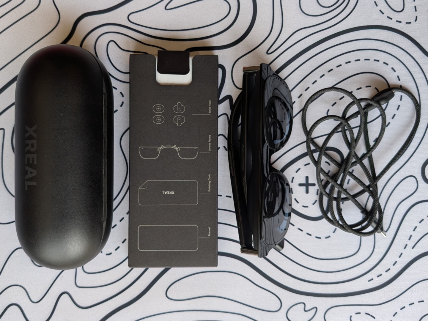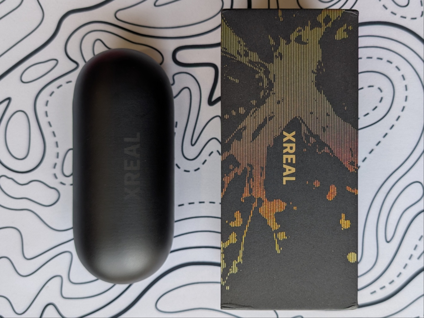 Gli occhiali Xreal One Pro sono ordinatamente confezionati in una scatola nera con accenti dorati per una sensazione di qualità. All'interno, sono inseriti in una custodia relativamente grande che offre spazio per il cavo USB Type-C e gli occhiali. Xreal fornisce anche un panno in microfibra, una montatura per le lenti e cuscinetti per il naso di diverse dimensioni per un'esperienza visiva ideale. Chi ha bisogno di lenti da vista (come me) riceve un set consegnato separatamente da HonsVR.