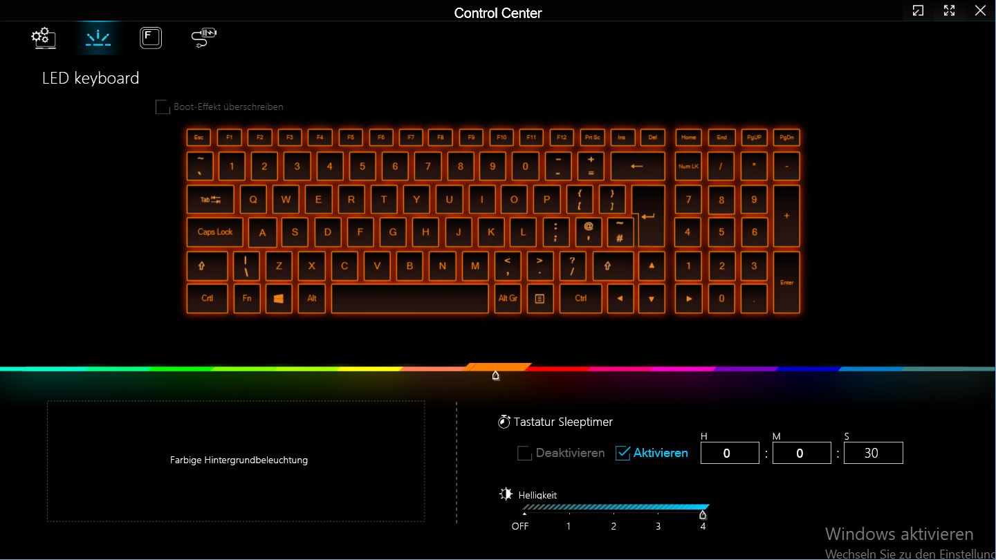 Il layout della tastiera è funzionale e senza problemi. I tasti freccia sono di dimensioni normali (circa 15 x 15 mm), il tastierino numerico ha tasti più piccoli (15 x 12,6 mm) e si collega senza problemi sul lato destro. In alto a destra è presente un pulsante aggiuntivo per l'accensione.