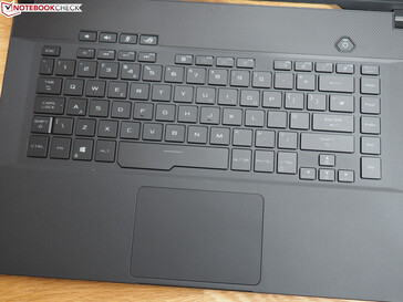 La CPU e la GPU del GX502 non hanno bisogno di potenti soluzioni di raffreddamento come quelle del GX531, quindi ASUS ha progettato il dispositivo con un layout convenzionale di tastiera e trackpad. I tasti sono retroilluminati RGB, mentre i punti di pressione e i tratti dovrebbero soddisfare la maggior parte delle persone. ASUS ha posizionato quattro tasti di dimensioni dimezzate in una fila sopra i tasti funzione, che dovrebbero facilitare la regolazione di alcune impostazioni durante il gioco.