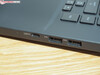 ASUS non ha migliorato le cose con la distribuzione delle porte che ha incluso. L'azienda ha posizionato le griglie di ventilazione sui lati del dispositivo, il che non è necessariamente un male. Tuttavia, queste si trovano ad una certa distanza dal bordo del dispositivo, il che di fatto costringe tutte le porte più vicine al bordo anteriore del telaio. Di conseguenza, potrebbe essere difficile usare un mouse esterno con la mano destra, specialmente uno cablato, se avete anche altri dispositivi USB collegati al GX502.