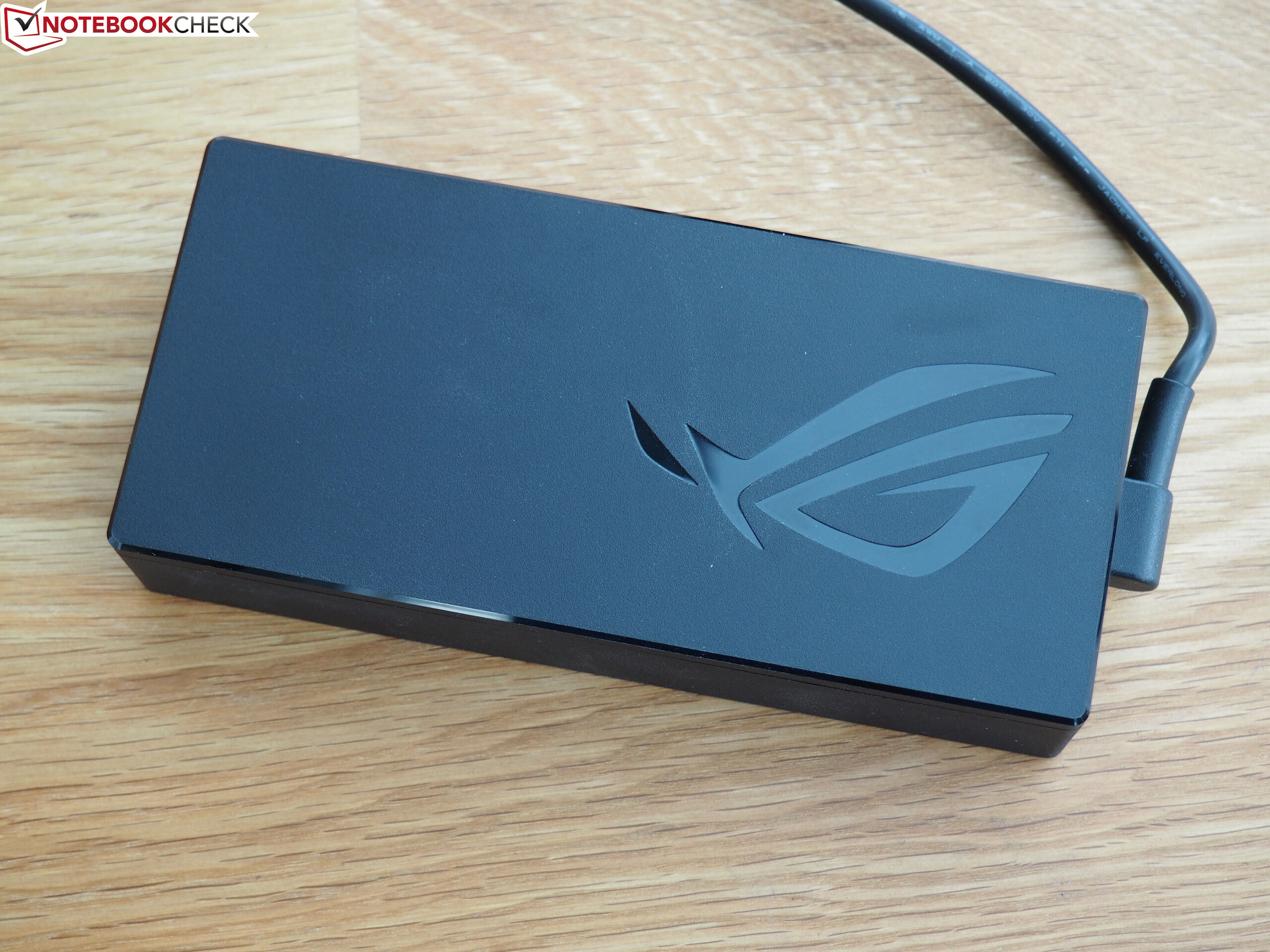 La nostra unità di test offre un semplice alimentatore e un modello 3D. ASUS include una fotocamera esterna in alcune regioni, visto che il GX502GW non ne ha una. I modelli alimentati da GeForce RTX 2070, come il nostro dispositivo di prova, hanno un caricabatterie da 230 W che misura 16,5 x 7,5 x 3 cm e pesa circa 0,6 kg. ASUS include un caricabatterie di capacità inferiore con i modelli GeForce RTX 2060.