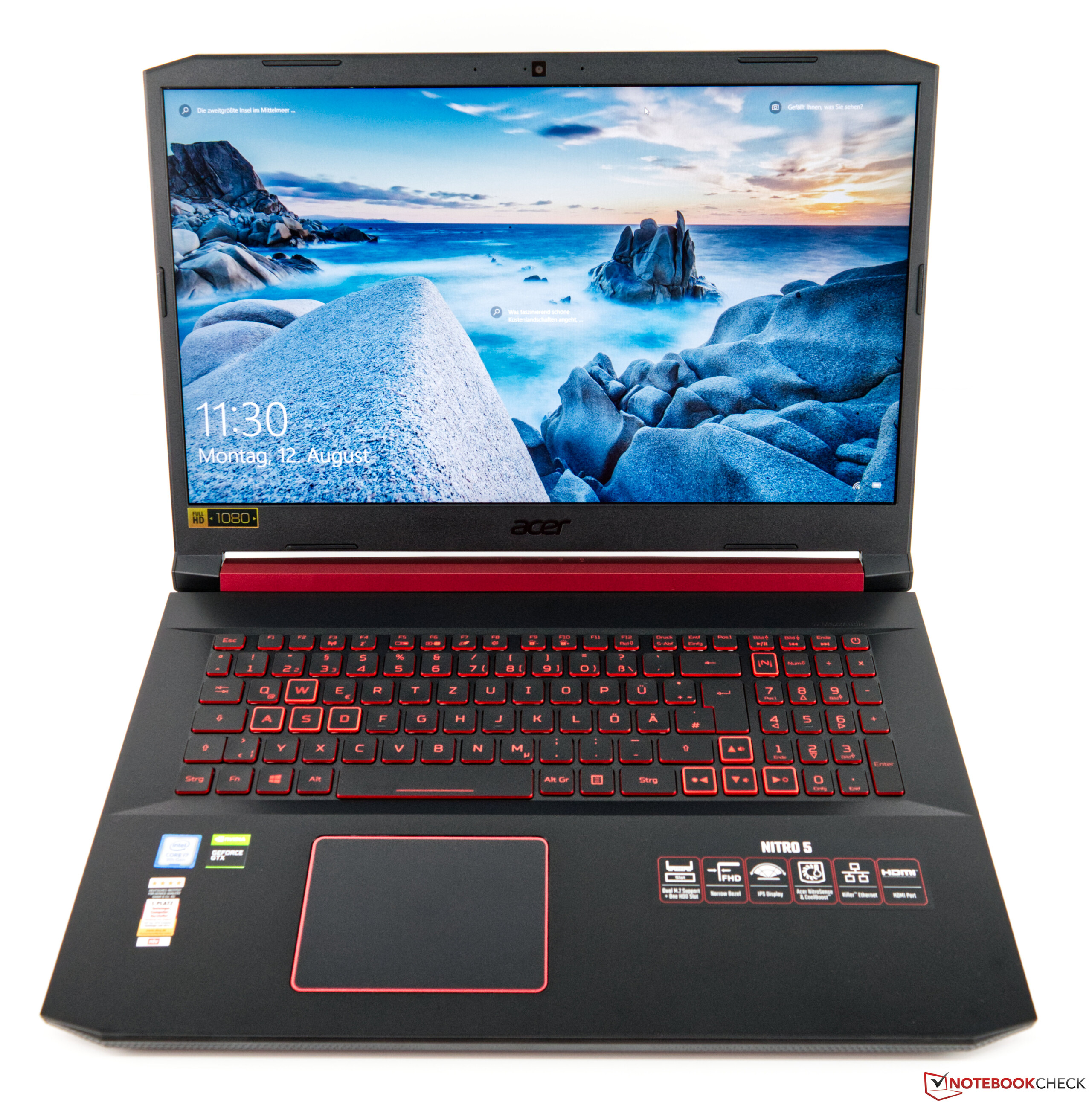 Il Nitro 5 ha un display da 17,3 pollici che funziona nativamente a 1.920 x 1.080, con una densità di pixel di 127 PPI. Acer non offre display alternativi per il Nitro 5.