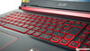 Acer dota il Nitro 5 di una tastiera chiclet a 6 file. Acer incassa leggermente la tastiera nel piano di lavoro, lasciandola a filo con il supporto per i polsi. Come abbiamo accennato in precedenza, i cappucci dei tasti hanno etichette rosse, anche se molti, tra cui WASD, hanno contorni rossi. Acer include anche una retroilluminazione a quattro livelli, che potreste usare meno spesso di quanto avreste immaginato, dato che le scritte rosse sono difficili da leggere in un ambiente luminoso. Purtroppo, la retroilluminazione è solo rossa, piuttosto che RGB.