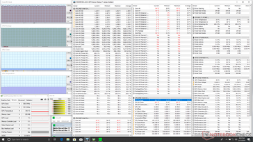 Le differenze cominciano ad emergere quando si eseguono carichi di lavoro più impegnativi come i giochi. Quando si esegue Witcher 3, ad esempio, siamo in grado di registrare un consumo energetico costante di 340 W rispetto ai soli 284 W dell'Asus ROG G703GX con il meno impegnativo Core i7-8750H da 45 W. Si tratta di un aumento del 20% dei consumi per un aumento del 5% delle prestazioni grafiche di questo particolare titolo. L'utilizzo di un Core i9-9900K desktop a piena velocità ha sicuramente le sue conseguenze a questo proposito.