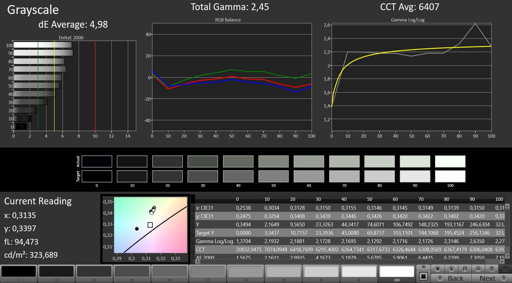 ΔE Greyscale Calman: 4.98 | ∀{0.09-98 Ø5}