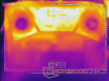 (+) La temperatura massima sul lato superiore è di 36.6 °C / 98 F, rispetto alla media di 40.4 °C / 105 F, che varia da 21.2 a 68.8 °C per questa classe Gaming.