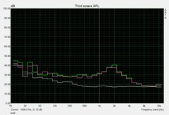 Al minimo e sotto carichi leggeri, i livelli di rumorosità sono tenuti sotto controllo nonostante la ventola sia costantemente in funzione. È possibile far girare il portatile in modalità silenziosa - per fare questo, dovete andare nel Gigabyte Control Center e impostare il controllo della ventola su "Quiet". Quando sono sotto carico, le ventole accelerano considerevolmente. Durante le prove di stress abbiamo misurato un livello di rumore di 45 dB(A). Tuttavia, durante il test ha prodotto meno rumore rispetto all'Aero 15-X9, che ha dotazioni inferiori. Durante il gaming era altrettanto rumoroso - qui abbiamo misurato livelli di rumore tra 38 e 45 dB(A) (media: 44 dB(A)). Per fare un confronto, nel nostro test The Witcher 3 abbiamo misurato livelli medi di rumore compresi tra 42 e 43 dB(A).