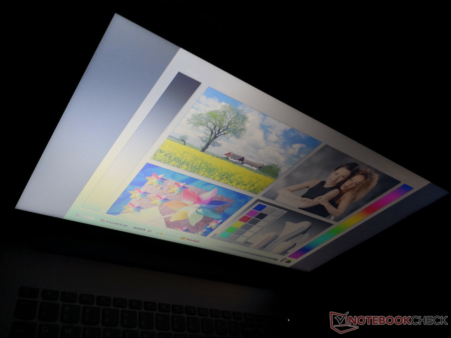 La granulosità da moderata a pesante è evidente sulla nostra unità di prova e riduce ulteriormente la nitidezza. Siamo delusi nel notare l'assenza di qualsiasi miglioramento significativo rispetto all'IdeaPad V110-17IKB del 2016 in termini di qualità di display.