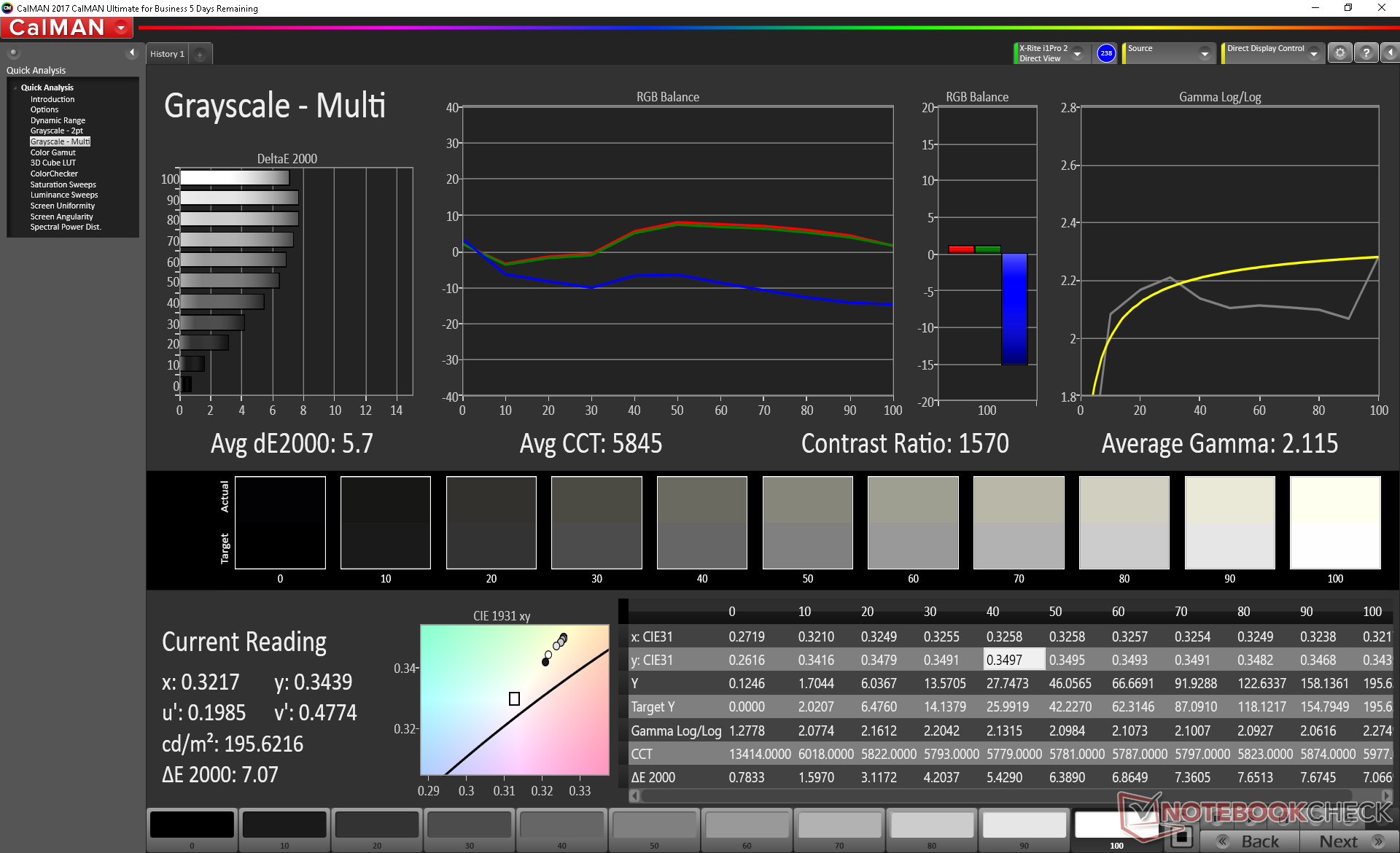 ΔE Greyscale Calman: 5.7 | ∀{0.09-98 Ø5}