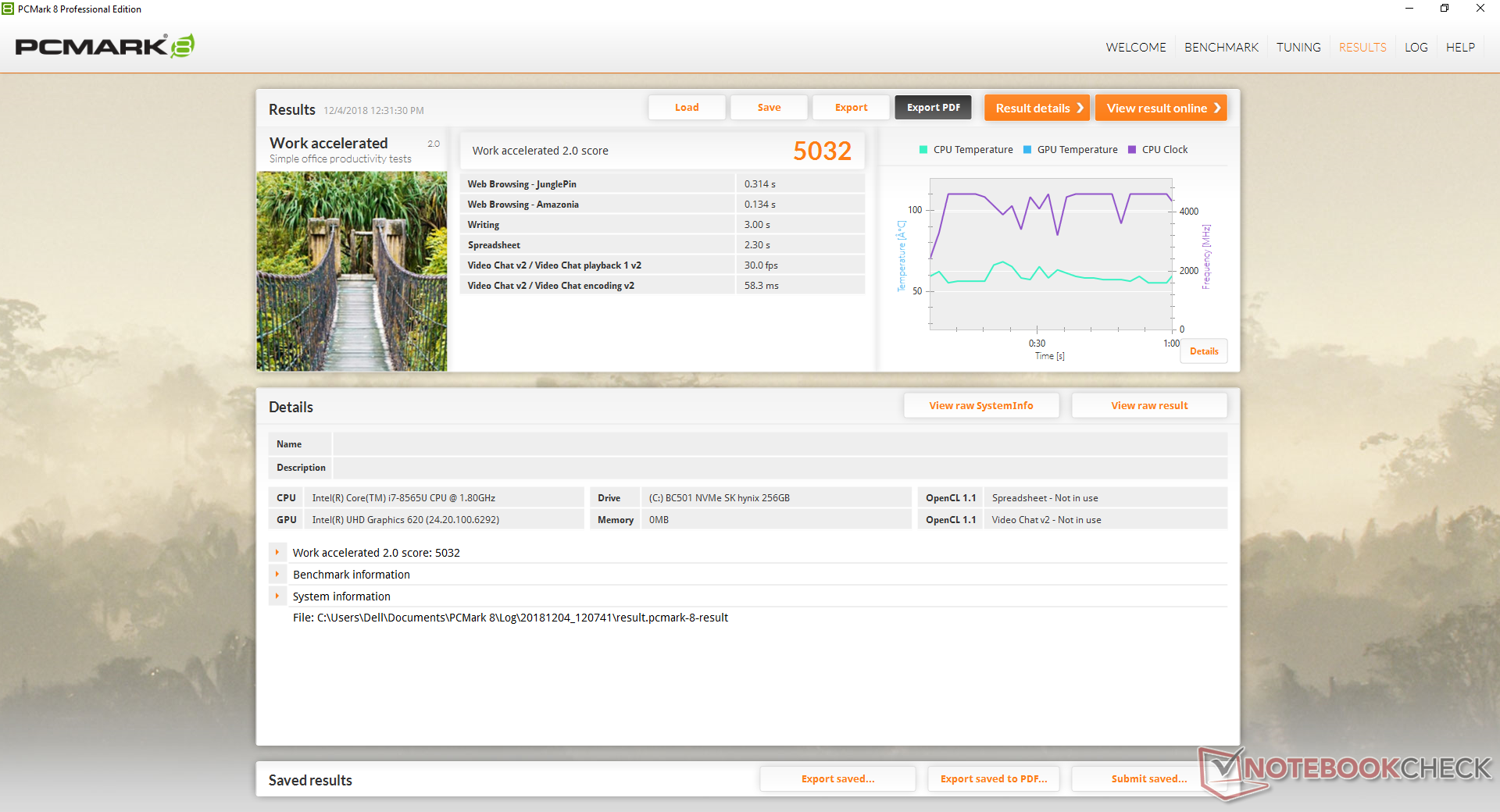 | Dell Inspiron 14 5000 5482 2-in-1 UHD Graphics 620, i7-8565U, SK Hynix BC501 NVMe 256 GB | Lenovo Yoga 530-14IKB-81EK00CWGE UHD Graphics 620, i5-8250U, SK hynix PC401 HFS256GD9TNG | Asus VivoBook Flip 14 TP412UA-DB51T UHD Graphics 620, i5-8250U, Micron 1100 MTFDDAV256TBN | Huawei Matebook X Pro i5 GeForce MX150, i5-8250U, Samsung PM961 MZVLW256HEHP | Microsoft Surface Laptop i7 Iris Plus Graphics 640, i7-7660U, Samsung PM971 KUS040202M | Lenovo ThinkPad A485-20MU000CGE Vega 8, R5 PRO 2500U, Samsung SSD PM981 MZVLB256HAHQ | |