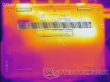 Le temperature di superficie al minimo sono più elevate del previsto verso la parte posteriore del sistema, dove può raggiungere i 31 °C rispetto ai soli 21 °C dei poggiapolsi. Quando è sotto carico massimo, il punto caldo sul fondo del sistema può superare i 42°C. Per fortuna, la tastiera e i poggiapolsi non subiscono quasi nessun cambiamento di temperatura e quindi le mani o le dita non si scaldano mai in maniera scomoda. Tuttavia, la metà sinistra del sistema sarà sempre più calda di quella destra a causa del posizionamento del processore al di sotto.