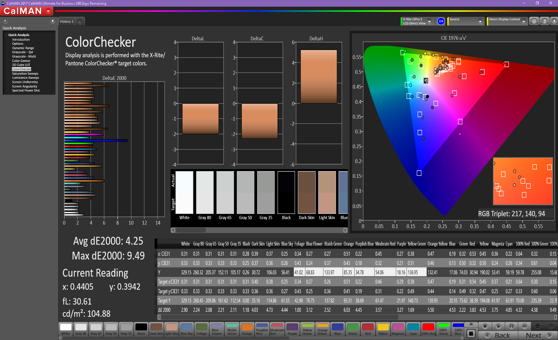 ΔE ColorChecker Calman: 4.25 | ∀{0.5-29.43 Ø4.78}