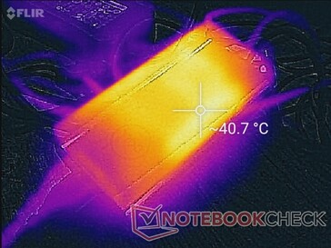 Le temperature di superficie sono complessivamente più fresche rispetto al vecchio Latitude 9410 2-in-1. Quando si eseguono carichi elevati, i punti caldi variano tra 42° C e 48° C sui lati superiore e inferiore, rispettivamente, rispetto ai 48° C e 56° C del modello dell'anno scorso. Dell è riuscita a tirare fuori temperature più basse anche con meno griglie di ventilazione sul pannello inferiore.
