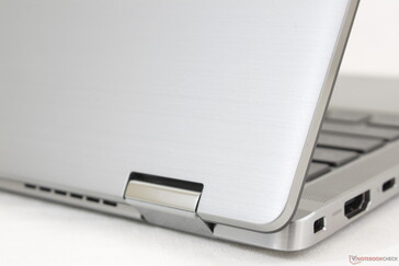 La rigidità del telaio rimane eccellente senza scricchiolii e solo un po' di deformazione al centro della tastiera o sulla cover esterna. Appare paragonabile all'HP Spectre x360 14 a questo proposito.