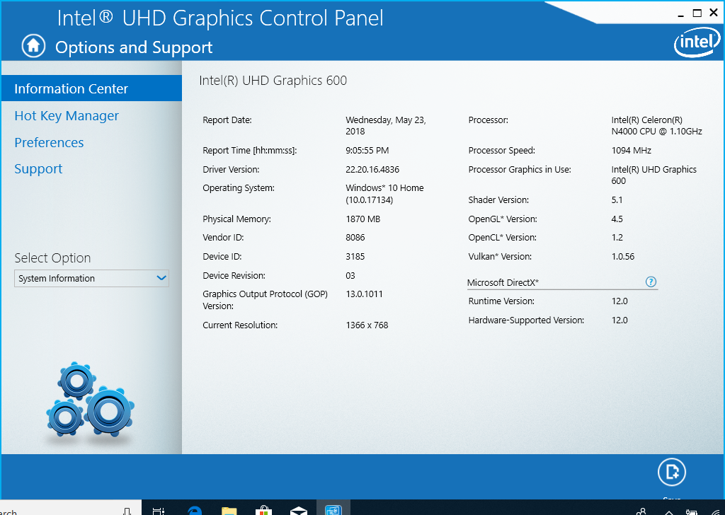 La Grafica UHD Graphics 600 integrata non è per il gaming, in quanto fornisce solo prestazioni marginali rispetto alla HD Graphics 505. È tuttavia in grado di riprodurre video 1080p e 4K da YouTube senza problemi.
