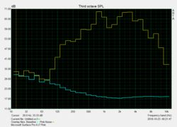 Il dispositivo è silenzioso in idle, e le ventole si accendono solo occasionalmente fino a 30.3 dB(A) con task leggeri, e fino a 31.8 dB(A) con carichi di lavoro moderati. I processi intensi ma brevi, come il trasferimento di grossi file, portano le ventole a raggiungere un massimo di 33.5 dB(A), che è anche il massimo raggiunto durante gli stress test. In ogni caso le ventole non sono fastidiose.
