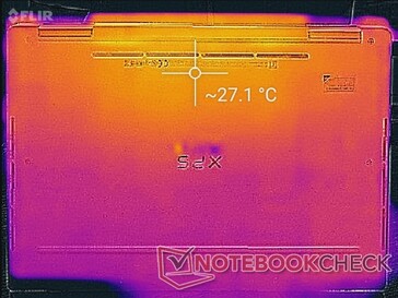 Le temperature di superficie sono quasi identiche a quelle che abbiamo osservato sul Ice Lake-powered XPS 13 7390 2-in-1 a circa 50 C e 57 C sui punti caldi superiore e inferiore, rispettivamente. La tastiera continua ad essere notevolmente più calda rispetto alla maggior parte degli altri subnotebook tra cui il nuovoSamsung Galaxy Book Pro 360.