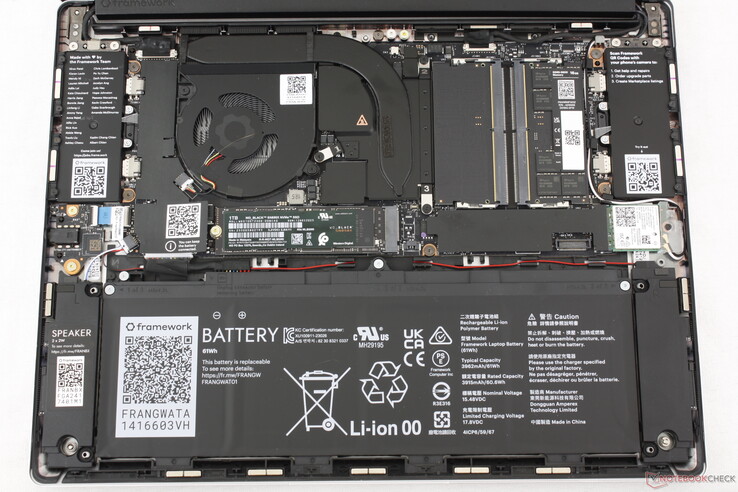 Il design resistente e familiare del Laptop 13.5 significa che probabilmente potrà continuare a supportare i processori nuovi e futuri a costi più bassi sia per il produttore che per il consumatore. Si tratta di un'ottima notizia dal punto di vista della riparabilità e della sostenibilità, ma significa anche che la maggior parte degli inconvenienti esistenti del lancio originale del 2021 continueranno a perseguitare la serie per gli anni a venire. Ad esempio, le SKU più recenti supportano le CPU Core-P e Core Ultra più veloci, anziché solo Core-U, ma sono anche più esigenti nei confronti della soluzione di raffreddamento obsoleta e quindi tendono a strozzarsi di più rispetto ai computer portatili concorrenti con le stesse opzioni Core, come i modelli Lenovo ThinkPad P14 e Lenovo ThinkPad P14 Lenovo ThinkPad P14s G5. In altre parole, si è praticamente bloccati nell'utilizzo di componenti più vecchi e qualsiasi aggiornamento interno o esterno significativo, come la camera di vapore o il metallo liquido per migliorare il raffreddamento o il rumore della ventola, rischierebbe di complicare l'angolo di riparabilità della serie.