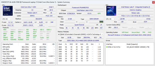 | 84 % | v8 | 08/2024 | Framework Laptop 13.5 Core Ultra 7 155H Ultra 7 155H, Arc 8-Core | 1.4 kg | 15.85 mm | 13.50" | 2880x1920 | |