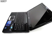 Il case da' comunque un generale impressione di alta qualità, data, non solo dalla comprovata robustezza del notebook, ma anche dalla combinazione di materiali lucidi attorno alla tastiera e opachi, vellutati nel zona appoggia mani. La combinazione di due differenti materiali è sia visivamente attrattivo che pratico visto che questi materiali prevengono l'accumularsi di impronte digitali e macchie. Comunque, il bordo lucido del display è un problema per due ragioni: primo il display è un grande magnete per impronte digitali e macchie, secondo perchè lo schermo lucido può causare riflessi che possono distrarre. Comunque, insieme al pannello lucido, è il male minore.