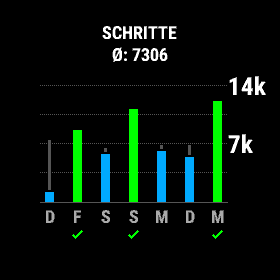 L'Enduro conta i passi, traduce qualsiasi elevazione scalata in piani scalati, e confronta entrambi con gli obiettivi giornalieri impostati. Il Garmin conta le attività ad alta intensità il doppio ai fini del conteggio dell'obiettivo dei minuti di intensità.