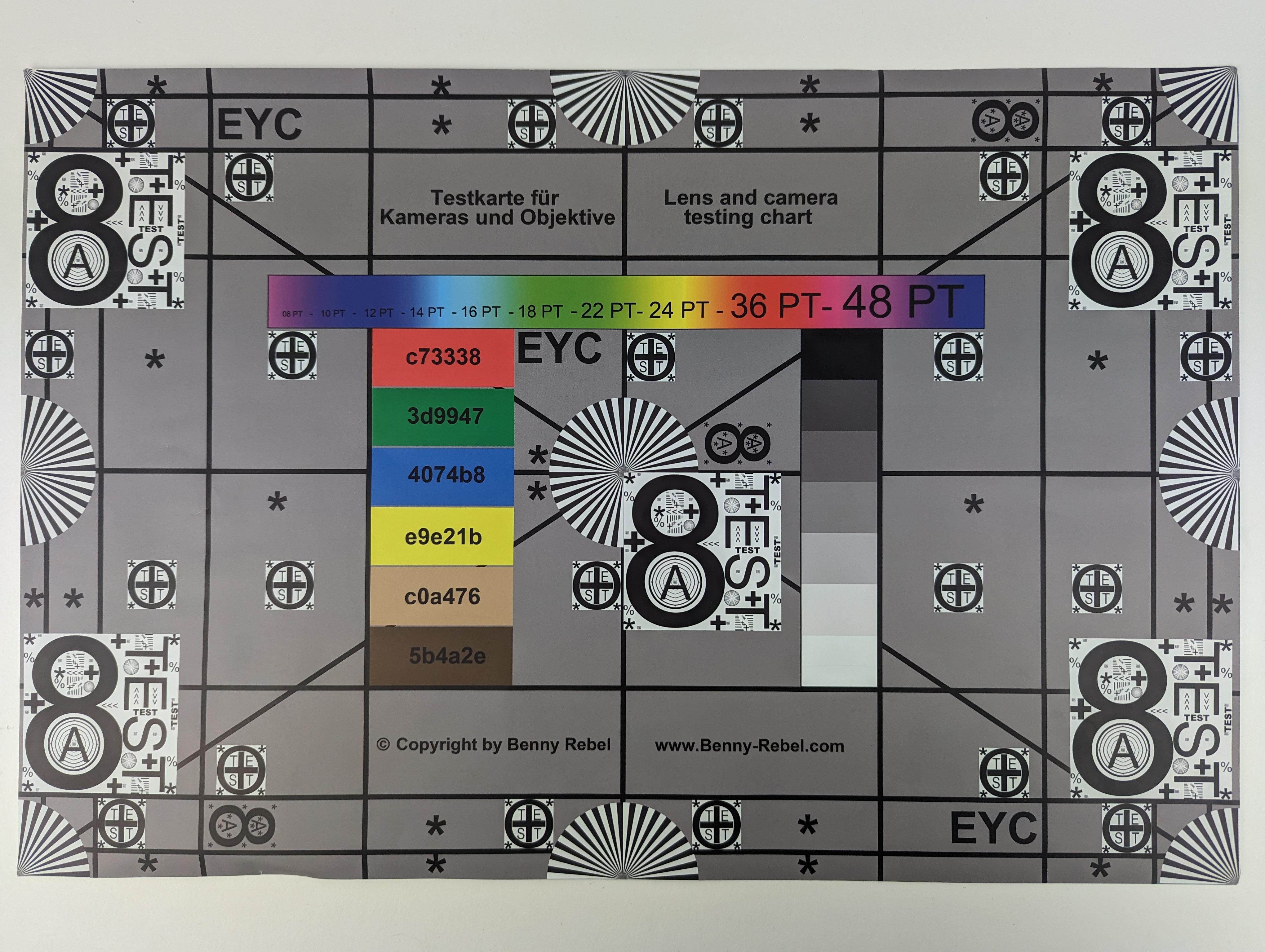 Il grafico di prova è stato catturato con un bilanciamento del bianco caldo ma, nonostante ciò, i dettagli sono rimasti intatti fino ai bordi.