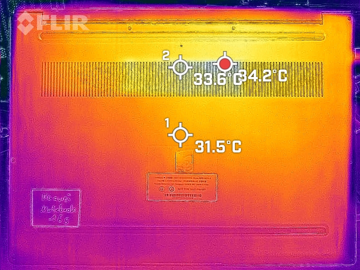 (±) Il lato inferiore si riscalda fino ad un massimo di 44.7 °C / 112 F, rispetto alla media di 39.2 °C / 103 F
