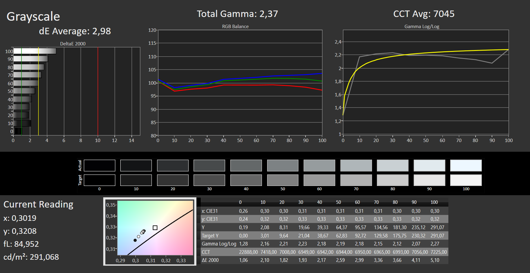 ΔE Greyscale Calman: 2.98 | ∀{0.09-98 Ø5}