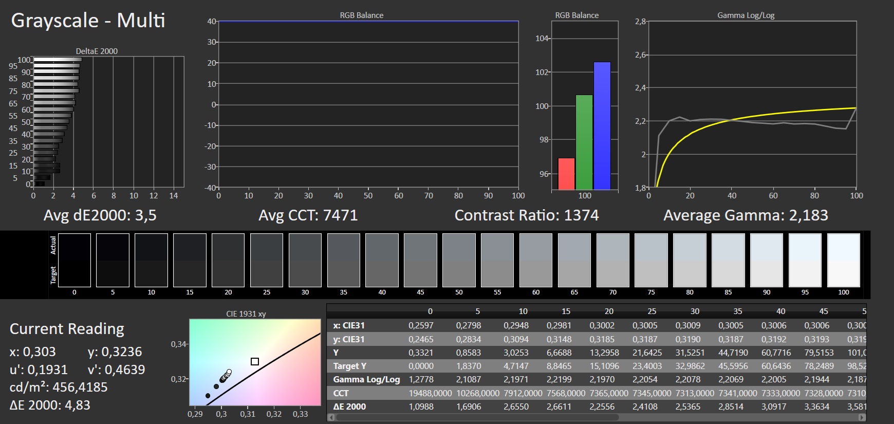 ΔE Greyscale Calman: 3.5 | ∀{0.09-98 Ø5}