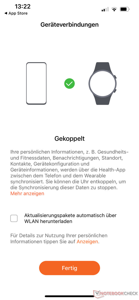 Dopo l'allenamento, il tracker e l'app forniscono un'analisi completa nel modo consueto. Grazie al GPS, anche la distanza percorsa può essere monitorata con precisione nell'app. Inoltre, il braccialetto sportivo fornisce dati sul carico di allenamento, sul tempo di recupero e sul VO2Max. Grazie alla resistenza all'acqua fino a 5 ATM, il wearable può rimanere al polso anche durante il nuoto e altri sport acquatici.