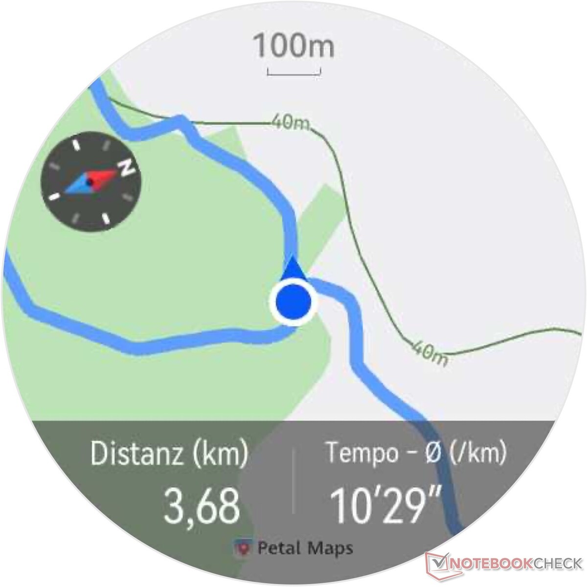 Mentre il precedente Watch GT 4 Generation perdeva ancora terreno in termini di precisione GNSS, Huawei è riuscita a ottenere miglioramenti visibili con il Watch GT 5 Pro. Nel nostro test pratico, il posizionamento è stato molto più preciso. Le deviazioni da un Garmin Venu 2 come riferimento sono minime. Il sistema di posizionamento dello smartwatch supporta tutte e cinque le reti satellitari globali con tecnologia dual-band. La connessione è stata stabilita in modo rapido e affidabile durante il test.