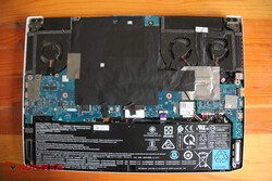 All'interno, gli utenti dovrebbero avere accesso a tutti i componenti, ma non è così. Quasi tutto è coperto da nastro nero. Per questo motivo, quasi nulla, tranne il modulo Wi-Fi, la batteria e le ventole sono accessibili. Abbiamo preferito non rimuovere il nastro adesivo.