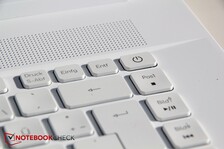 Il ConceptD sembra essere di alta qualità. Ciò è dovuto alle dimensioni contenute, al telaio in alluminio e all'elegante colore bianco - un potente dispositivo per i progettisti deve essere esteticamente accattivante dopo tutto. Gli scarichi della ventola sul retro sono decorati con motivi e la tastiera è leggermente incassata nell'unità base.