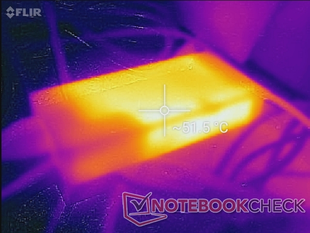 (-) Il lato inferiore si riscalda fino ad un massimo di 53.6 °C / 128 F, rispetto alla media di 43.3 °C / 110 F