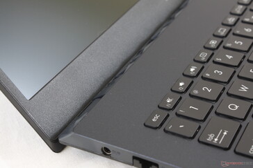 La serie VivoBook 15 K571 utilizza un design dello chassis diverso da quello della serie VivoBook 15 F512 per poter accogliere le versioni più veloci dei processori. La rigidità del telaio rimane all'incirca la stessa, essendo ancora per lo più in plastica. Sia la base che la cover si piegheranno più facilmente alla pressione rispetto alla serie HP Pavilion Gaming, pur essendo leggermente più rigido della serie Lenovo Legion Y540. E' decente per un sistema da 1000 dollari, a patto che gli utenti non si aspettino materiali metallici Razer, MacBook o ZenBook.