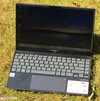 Le distanze sono regolari e non ci sono materiali in eccesso. Il dispositivo non soffre inoltre di grossi problemi di rigidità. Mentre l'unità base può essere piegata con una forza sufficiente, la rigidità è abbastanza buona da non essere motivo di preoccupazione. Lo stesso vale per la cover. In ogni caso: Una maggiore rigidità non dovrebbe essere troppo da chiedere ad un portatile altamente mobile da 1400-Euro (~$1665). L'applicazione di pressione sul retro della cover non crea distorsioni sullo schermo. Anche se le cerniere tengono il coperchio saldamente in posizione, ci sono delle oscillazioni. Lo schermo può essere aperto con un angolo massimo di circa 140 gradi. Il display può essere aperto con una mano sola.