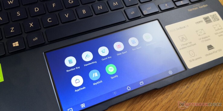 Come un normale clickpad, la superficie multi-touch dello ScreenPad è liscia con eccellenti proprietà di scorrevolezza e con un'aderenza minima anche quando ci si muove a bassa velocità. Sembra un tradizionale clickpad invece che un tablet touchscreen, poiché la superficie è opaca e non lucida. I pulsanti del mouse integrati, tuttavia, sono purtroppo poco profondi e con un debole feedback.