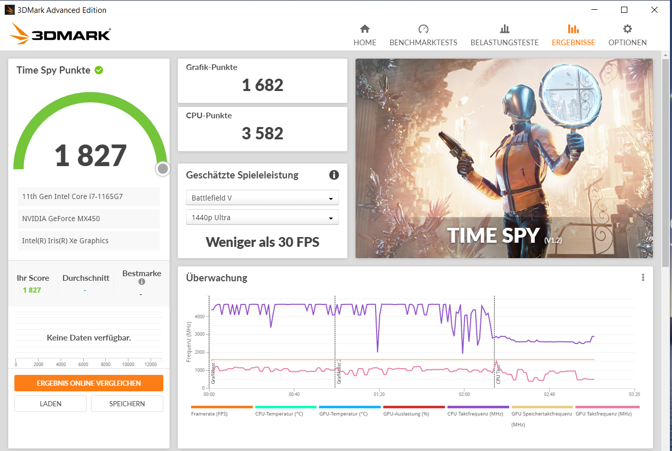 Anche se Asus ha equipaggiato lo ZenBook con il più debole dei modelli MX450 GeForce, i risultati del benchmark sono relativamente buoni. L'MX450 a bassa potenza (TGP: 12 watt) lascia il suo predecessore, l'MX350GeForce (TGP: 25 watt), per lo più indietro, anche se il suo consumo energetico è notevolmente inferiore.
