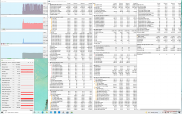 Quando viene stressata con Prime95, la CPU si spinge fino a 3,6-4 GHz e a una temperatura del core mite di 100° C. Dopo circa 90 secondi, tuttavia, la frequenza di clock varia tra 2,5 GHz e 3,4 GHz per mantenere una temperatura del core più fresca di 82° C. Eseguendo questo stesso test sull'XPS 17 9700 si ottengono frequenze di clock del core e temperature da 2,9 a 3,1 GHz e 99° C, rispettivamente, per suggerire che l'XPS 19 9710 può downcloccare ulteriormente la CPU Turbo Boost per temperature più basse quando necessario.