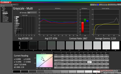 Il display è ben calibrato con valori medi di DeltaE della scala di grigi e del colore di appena 2,9 e 2,46, rispettivamente. Calibrando il pannello ancora di più noi stessi si ridurrebbe il DeltaE medio del colore a 1,85, ma i colori solidi primari e secondari rimarrebbero più imprecisi degli altri colori.