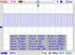 | PWM Frequency (Hz) | 208 ? | 352.1 ? | 2439 ? | 1000 | ||